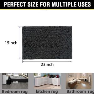 BOANKODU Bathroom Rugs 15×23, Extra Soft Absorbent Chenille Bath Rugs, PVC Backing Quick Dry, Machine Washable Bath Mats for Bathroom Floor, Tub and Shower, Home Decor Accessories, Dark Grey