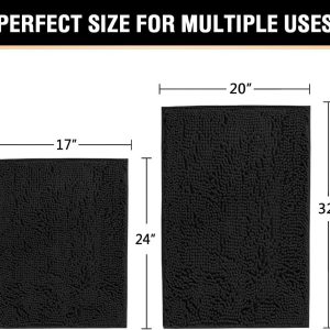 H.VERSAILTEX Black Bathroom Rug Set 2 Piece, Bath Mats for Bathroom Floor, Super Thick Soft Shaggy Chenille Bath Mats Machine Washable, Dry Fast Water Absorbent Bath Mats(20″ x 32″/17″ x 24″)