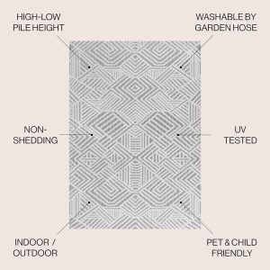 JONATHAN Y SBH103A-5 Jordan High-Low Pile Art Deco Geometric Indoor Outdoor Area-Rug Bohemian Contemporary Easy-Cleaning Bedroom Kitchen Backyard Patio Porch Non Shedding, 5 ft x 8 ft, White/Black