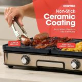 - NON-STICK CERAMIC COATING – This non-stick ceramic griddle features a PFAS-free ceramic coated surface that allows food to slide around and be lifted away easily, with a pull-out drip catcher tray to handle the greasy messes for you.